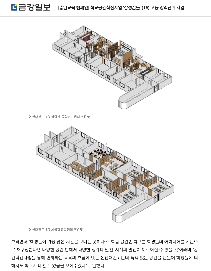 논산대건고등학교 학교공간혁신 사업이 금강일보에 실렸습니다.